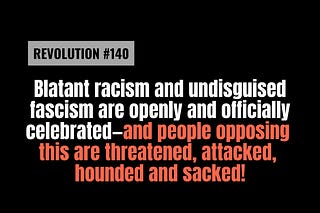 Blatant racism and undisguised fascism are openly and officially celebrated—and people opposing this are threatened, attacked, hounded and sacked!